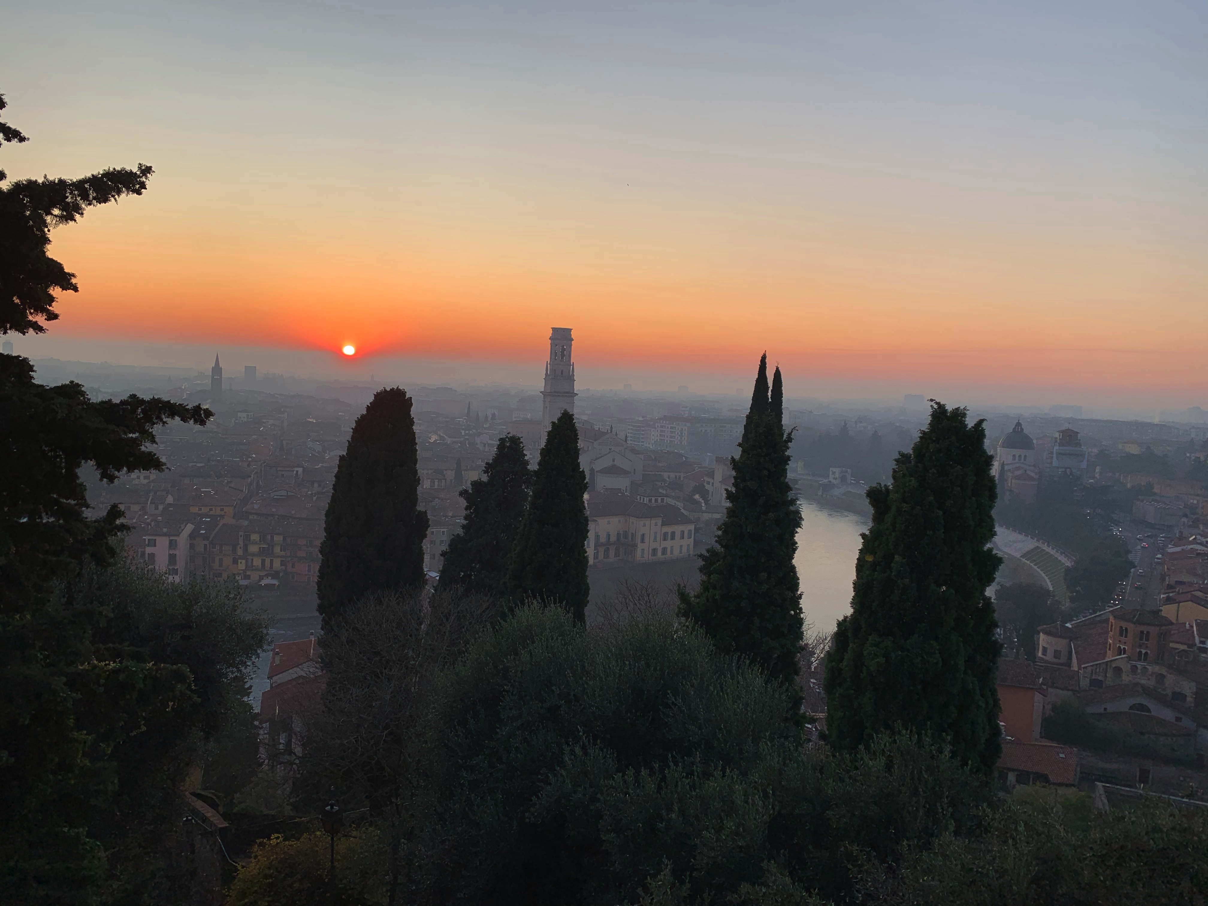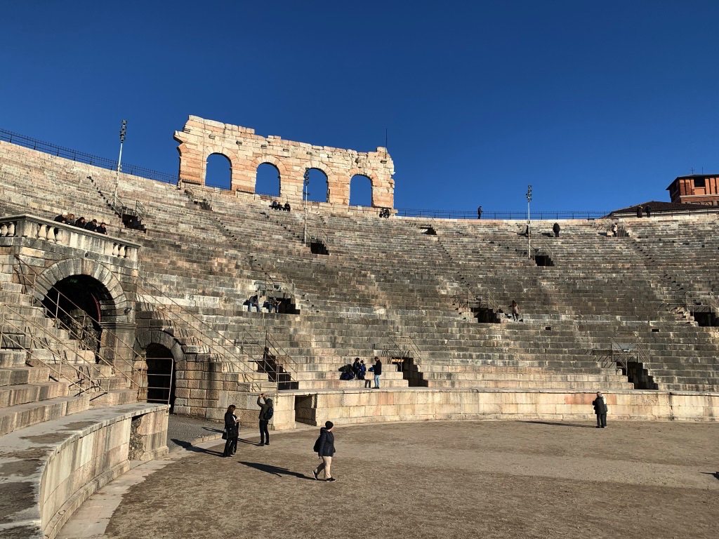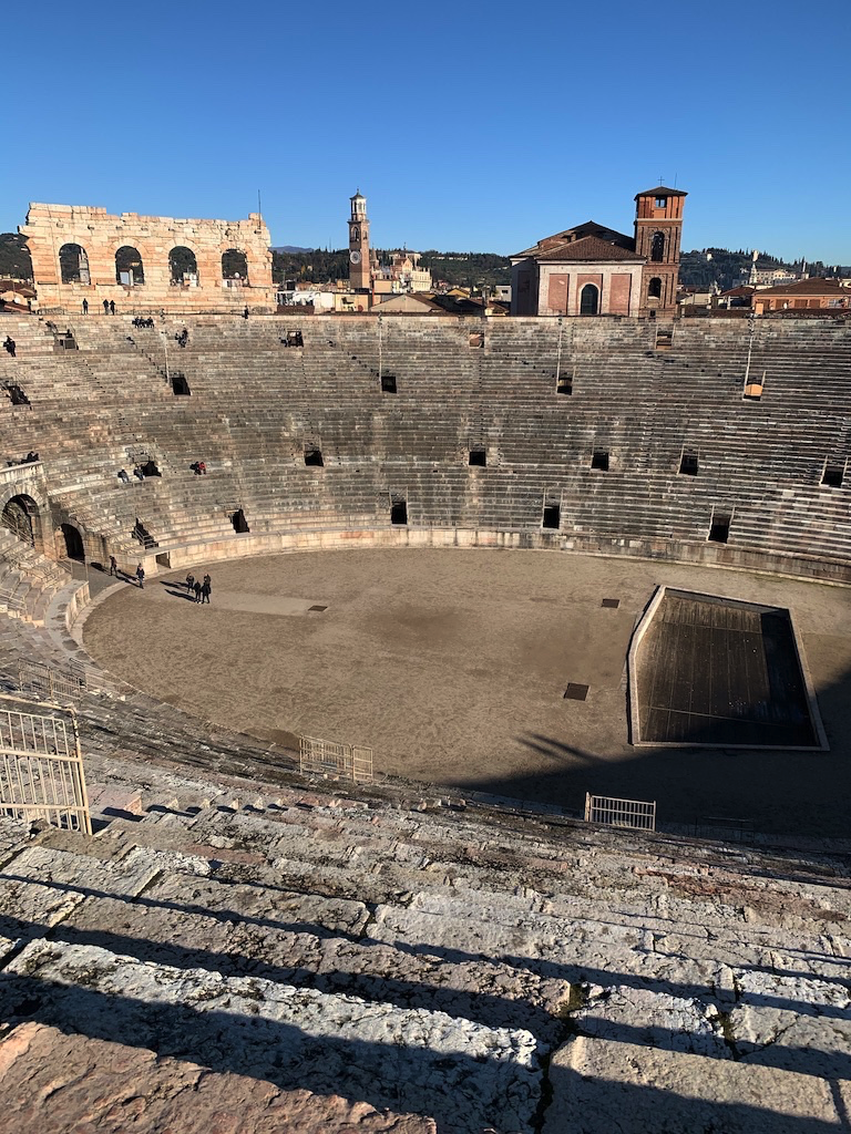 Choir concert at the Church of San Fermo, the Verona Arena from inside. Pretty street views from the steps to Castel San Pietro, Basilica of San Zeno and Verona views on a foggy day