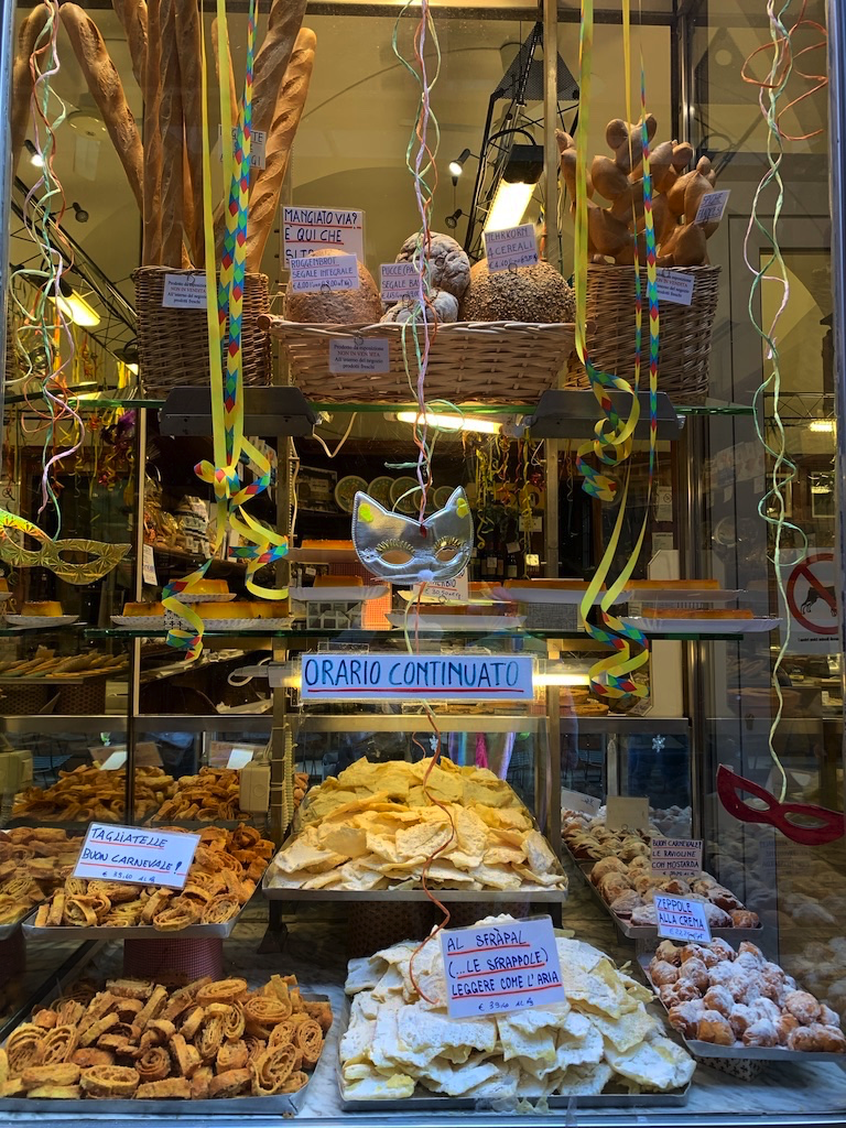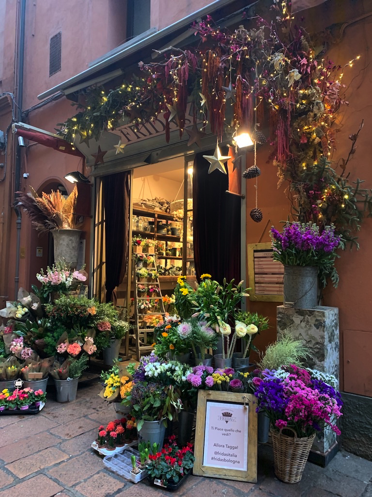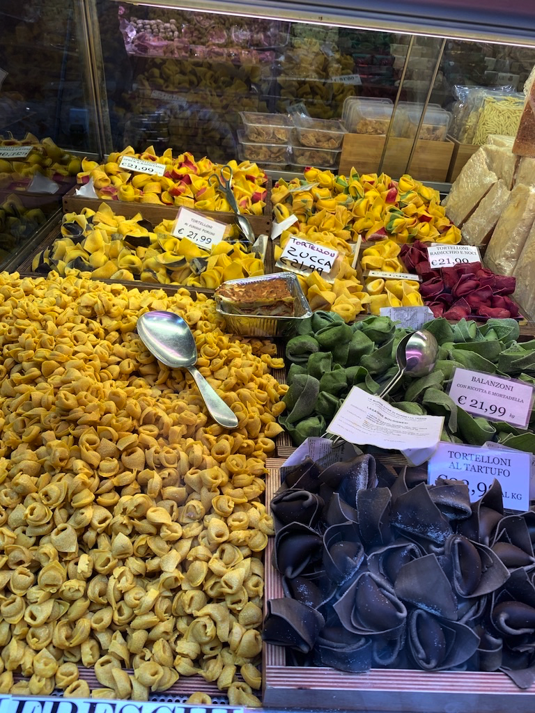 Fresh handmade pasta for sale, Bologna city views, the famous Tortelloni al Ragù, yummie pastries, Cass on the hike to the Sanctuary of the Madonna di San Luca feat. the famous Bologna Particoes and a picturesque flower shop in the city